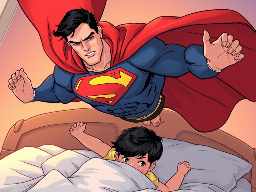 After the operation, I remember waking up in a room screaming. A week later, sepsis infection began to develop with hallucinations of being in an overwhelming, pulsating beam of light, suspended in the air in an out-of-the-body experience. I would wake up in the middle of the night with visions of seeing Superman, the super-hero in his blue outfit, big yellow “S” on his chest, red cape floating above me. Whenever we stayed home from school with a cold or the flue, my father would always bring us comicbooks to read.