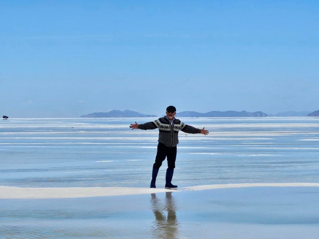 Friendship is a state of mind in an SUV traveling over a few inches of water, splashing under rubber boots through endless desert’s gleaming surfaces of unforgiving sunrays, tanning without mercy. Chapped lips💋in full glory!